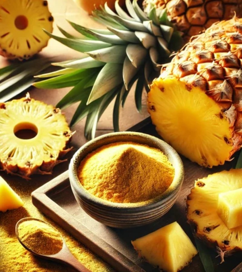 Pineapple powder has tropical flavor and is rich in bromelain. Used in juices, desserts, baby food, and supplements. Helps digestion and boosts immunity.